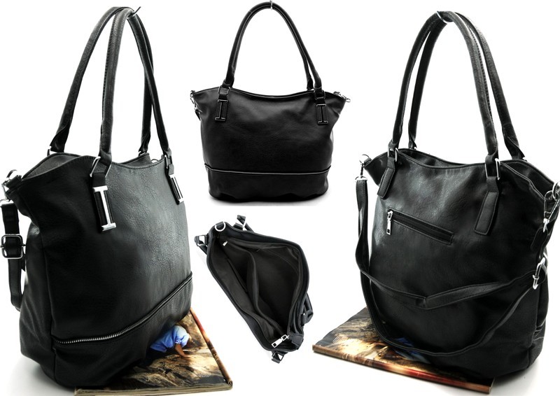 SZYKOWNA CZARNA STYLOWA CZARNA TOREBKA SHOPPER XXL Z DEKORACYJNYM SUWAKIEM.